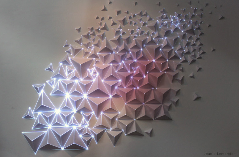 L'origami c'est l'art, venu d'Asie, du pliage du papier. Généralement inspiré de la nature, des animaux,des fleurs,et végétaux. Aujourd'hui il prend un nouveau visage, grâce aux designers. L'origami prend de volume, il s'illumine et se veut lyrique, plein de poésie et de finesse.
